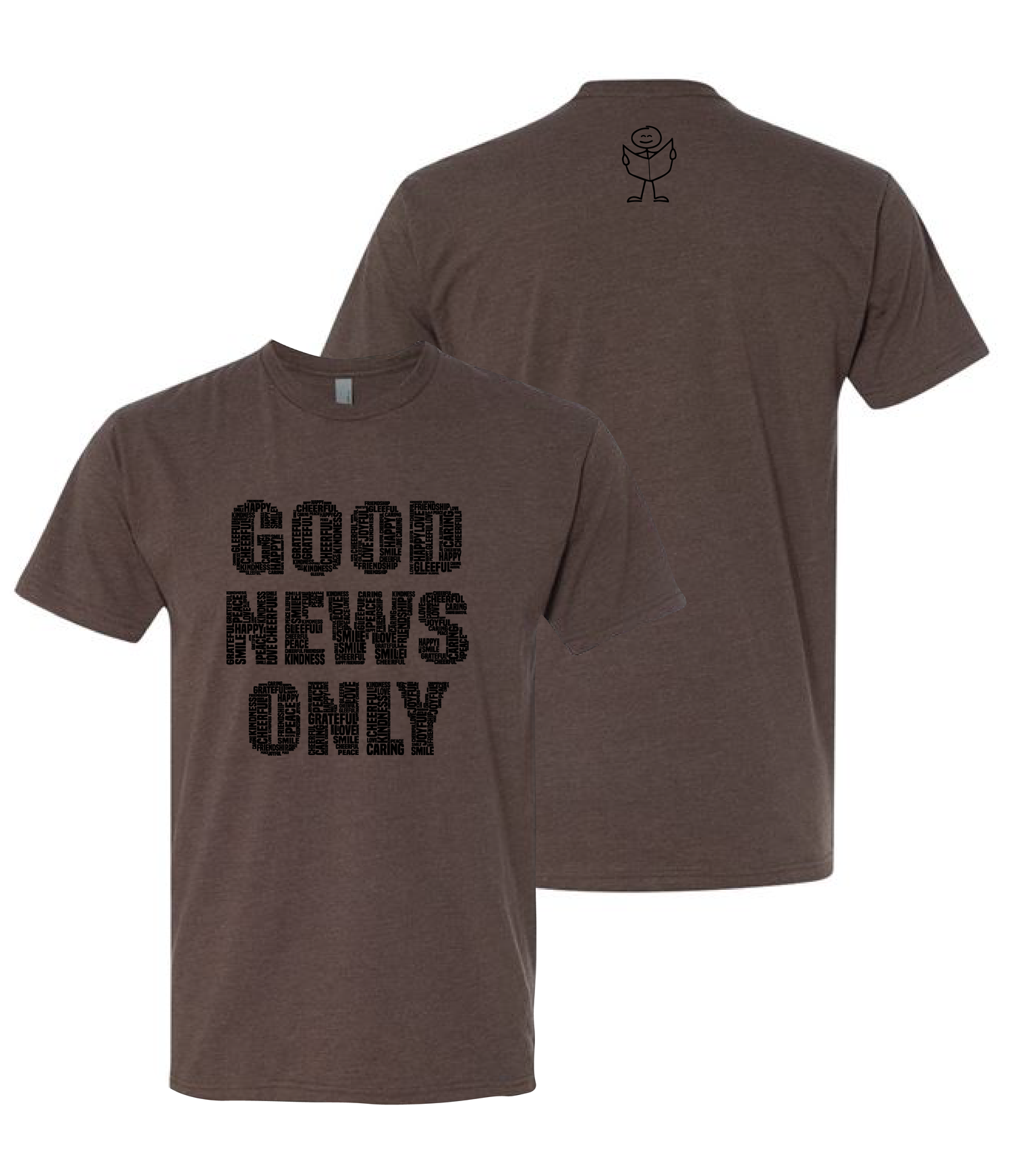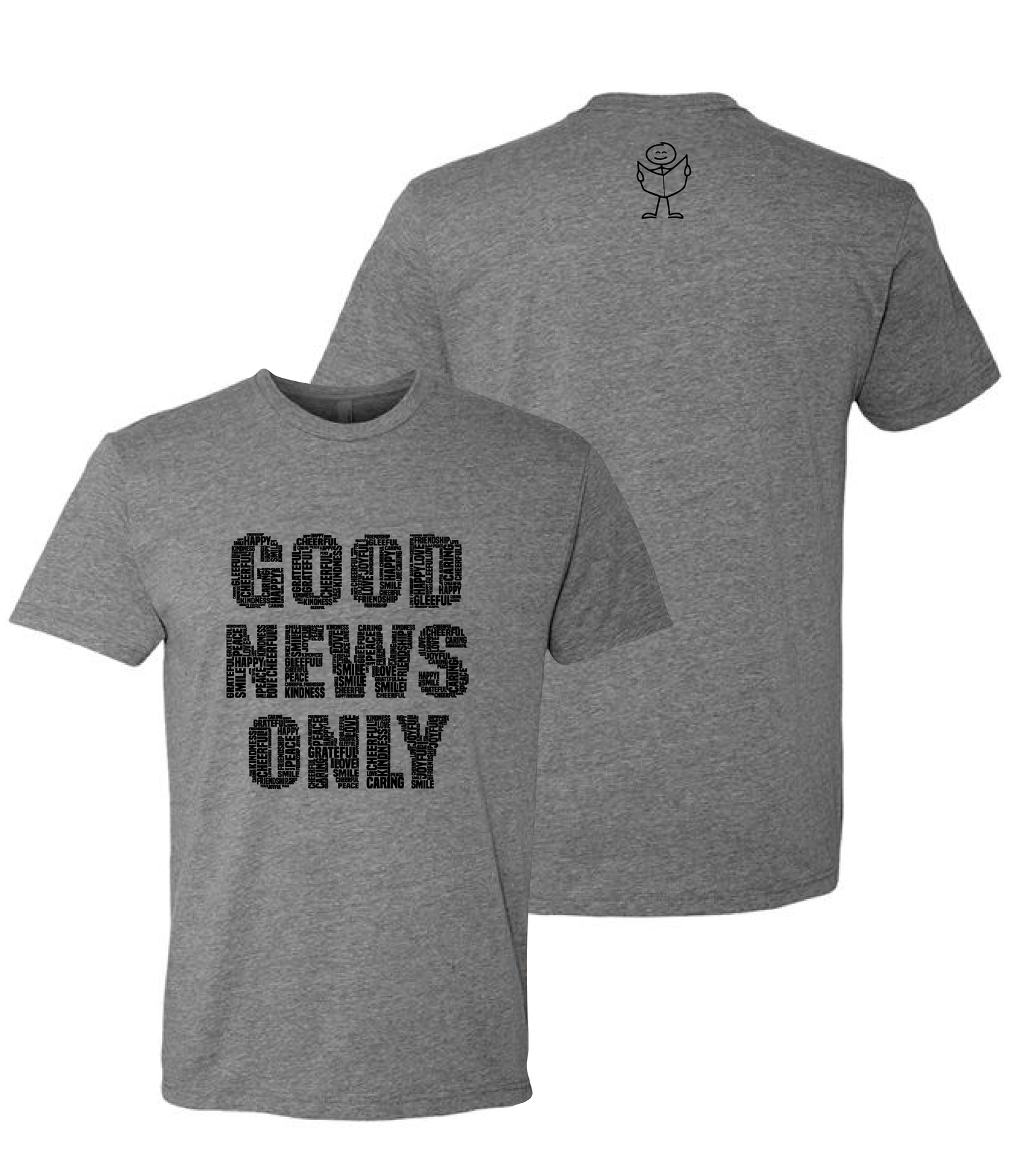 This Good News Only T-Shirt is a true classic! You'll notice logo is made up of all the words Good News Only Collection stands for "gratitude, peace, kindness, love..."